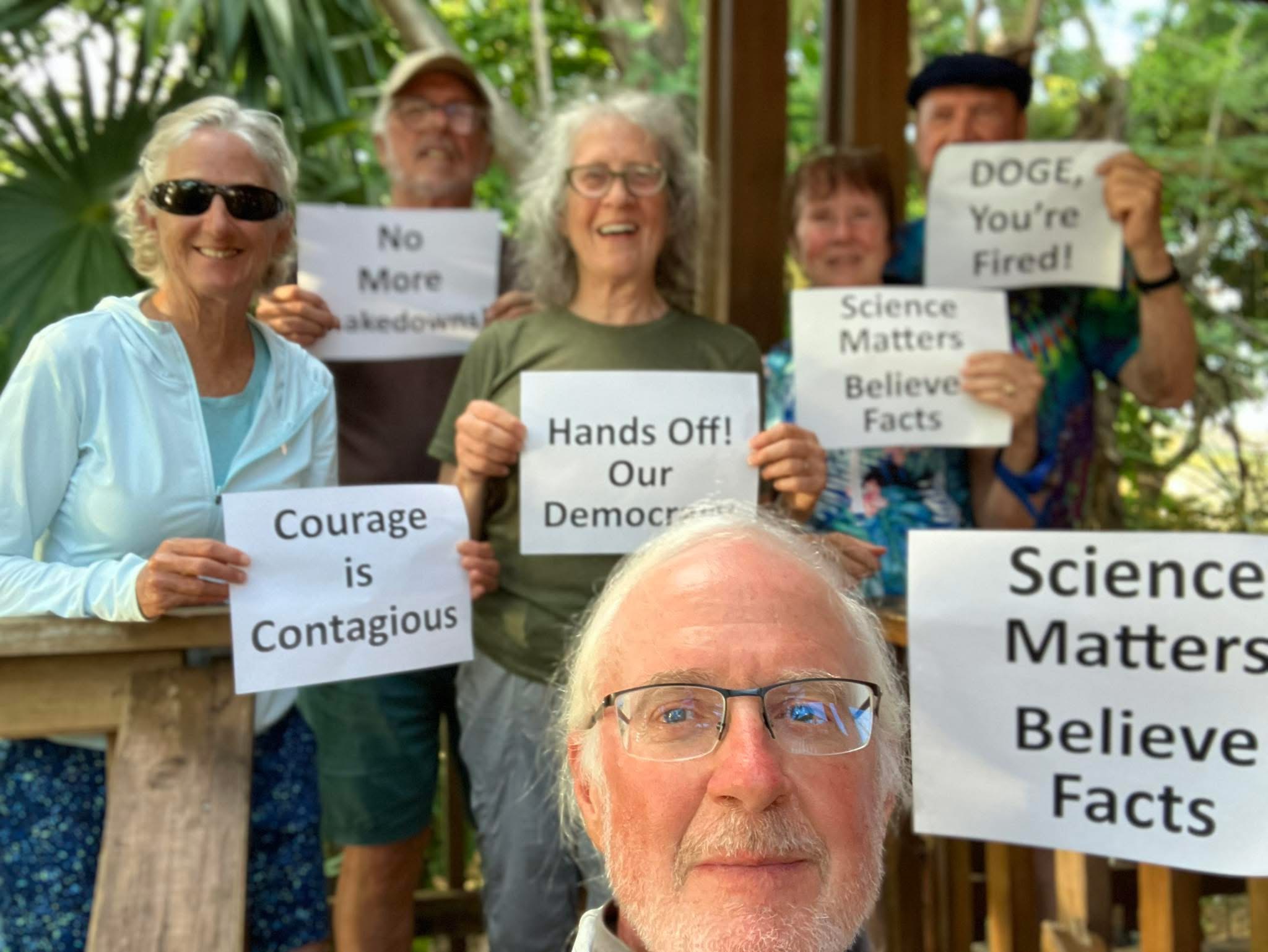 The Hands Off! protests in Tennessee were organized by Indivisible, 50501 and United Volunteers of Tennessee with many other groups, including Third Act Tennessee, pushing statewide promotion. In the Nashville area, there were three days of violent storms, tornados and torrential rains leading up to the April 5th event. That Saturday, it looked like there was a break in the weather, but saturated ground, standing water on some roads and an iffy forecast for the afternoon made organizers skittish, so a cancellation notice was sent out to those who had registered.